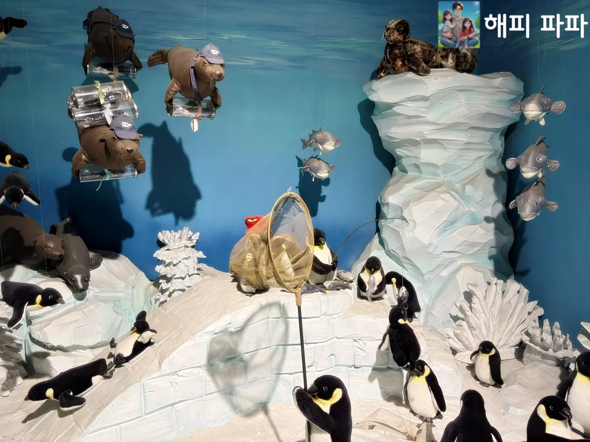 펭귄가족과 우편배달을 하는 물개도 있다 ㅋㅋㅋ 디테일을 살려서 동물 친구들이 많이 전시되어 있다.