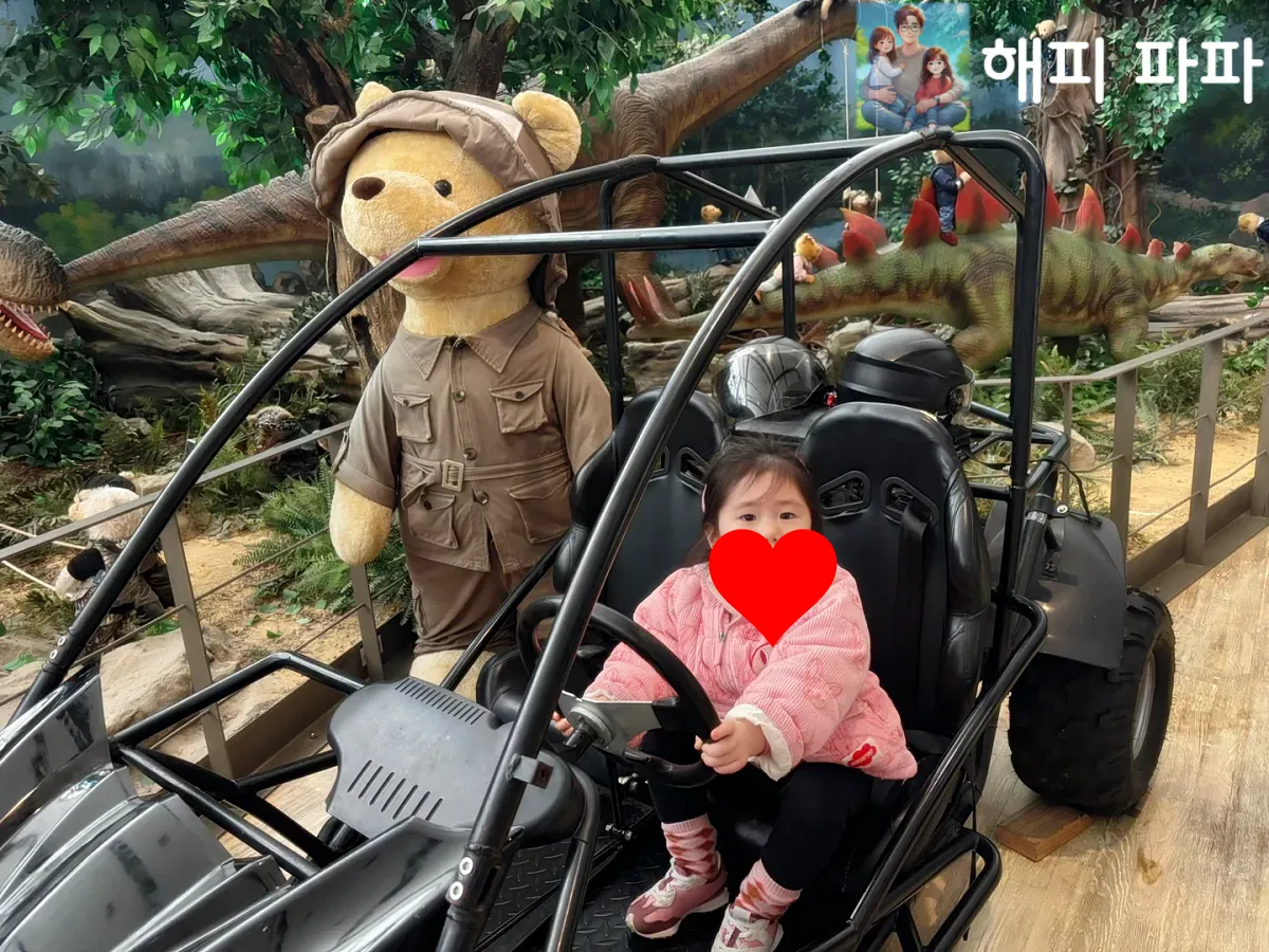 자기가 혼자 운전을 해보겠다며 차에 멋지게 타고 있는 큰딸이다 ㅋㅋㅋ 공룡은 무서워서 싫어했는데 최근에는 박치기 공룡이랑 트리케라톱스랑 조금씩 친해지고 있는 중이다. 공룡을 좋아하는 남자아이들이 가면 아주 좋아할 것 같아 적극 추천한다!