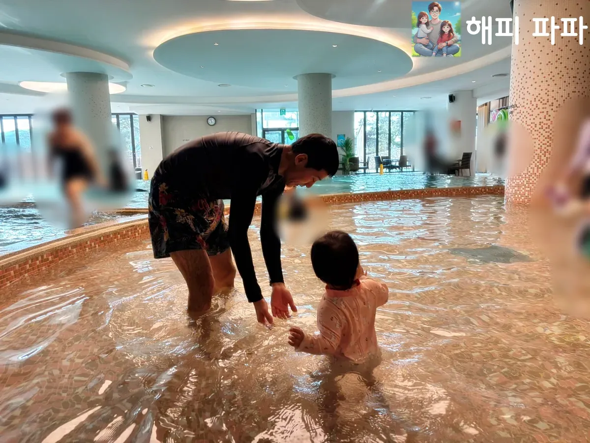추운 겨울에도 수온 30도를 유지하여 따뜻하게 물놀이를 할 수 있습니다. 호텔 체크인이 시작되는 3시부터 사람들이 조금씩 입장하기 시작합니다. 투숙객이라면 호텔 체크인을 하기 전, 수영장을 먼저 이용하는 것도 가능합니다.