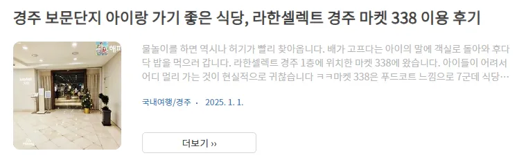 | 경주 보문단지 아이랑 가기 좋은 식당, 라한셀렉트 경주 마켓 338 이용 후기 (0) | 2025.01.01 |