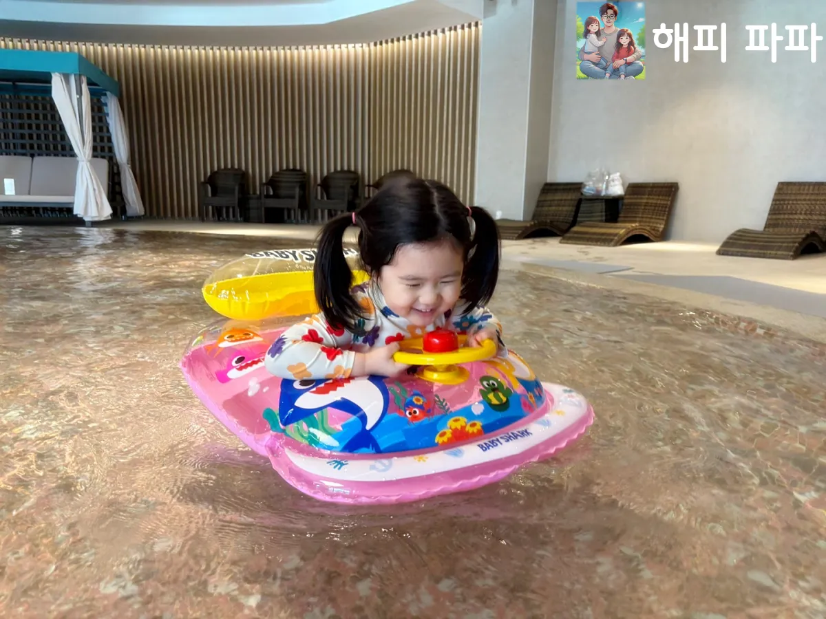 키즈풀은 두 아이 모두 튜브를 타고 즐겁게 놀 수 있었습니다. 다만 첫째 키가 약 95cm인데 튜브 없이는 무서워하네요. 서로 튜브를 타려고 소리를 지르는 바람에 정신이 어질어질... 내년에는 튜브를 하나 더 장만해야겠네요.