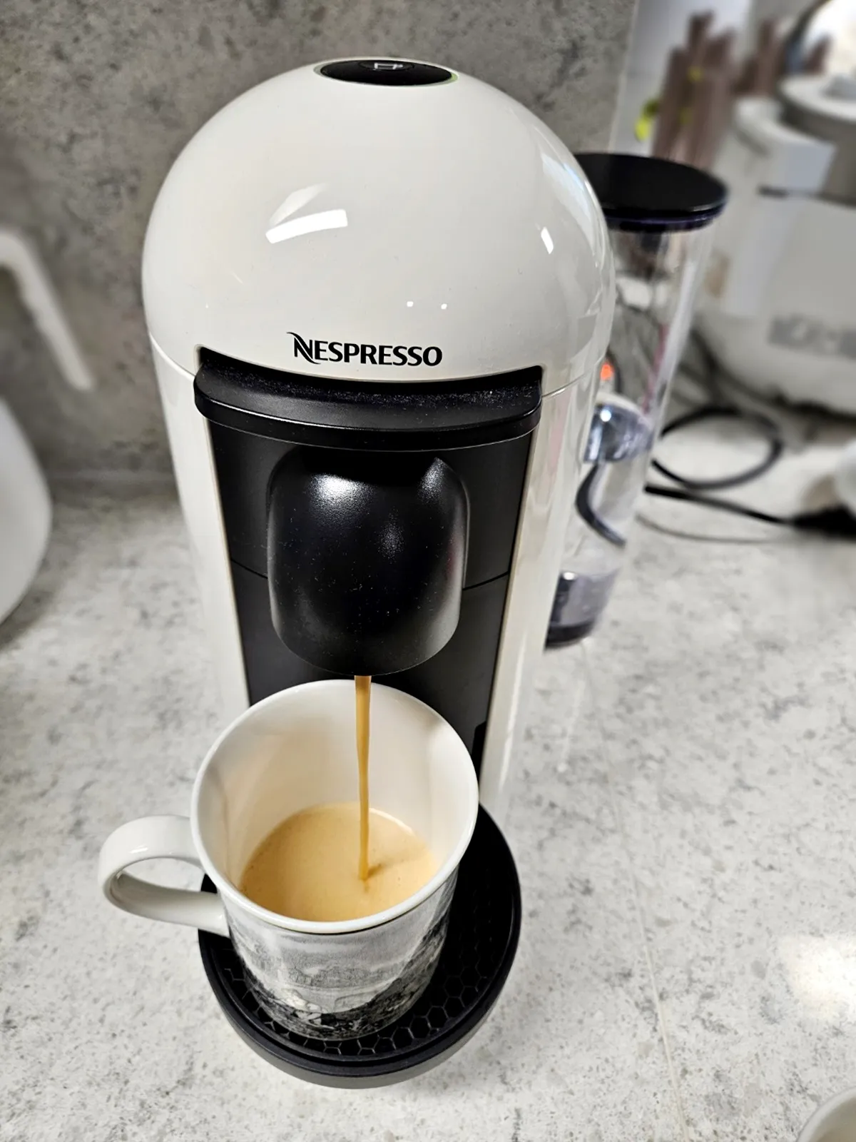 그럼 바로 추출을 시작합니다. 향긋한 커피 향이 집안에 퍼지는 행복한 시간이네요. 우리 집 혼수 1호 네스프레소 버츄오, 결혼하고 만 4년이 지났지만 고장 한번 없이 최고입니다.