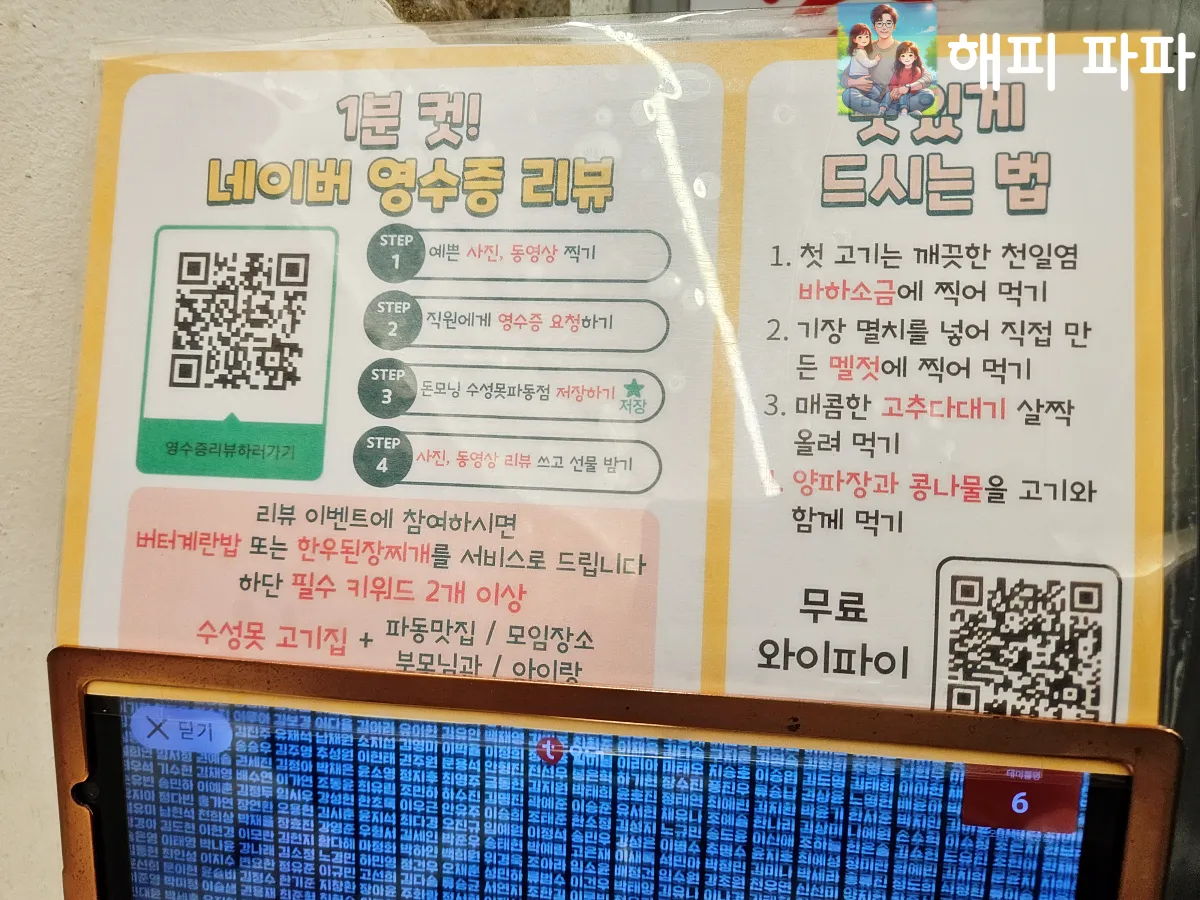 테이블에 친절하게 안내가 되어 있으니, 처음이라도 쉽게 따라 하실 수 있습니다. 꼭 영수증 리뷰에 참여하시고 서비스받아 가세요.