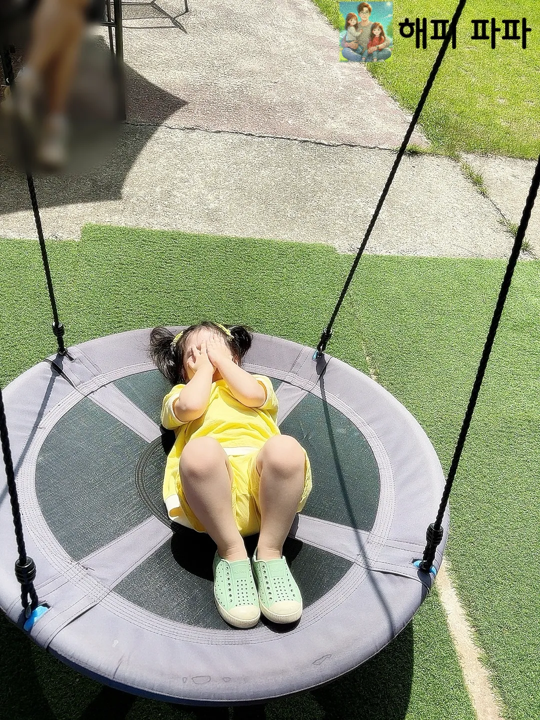 작년 8월 뜨거웠던 여름에 놀러 갔을 때 사진이다. 3살 큰딸이 그네를 타고 잘 놀고 있다.