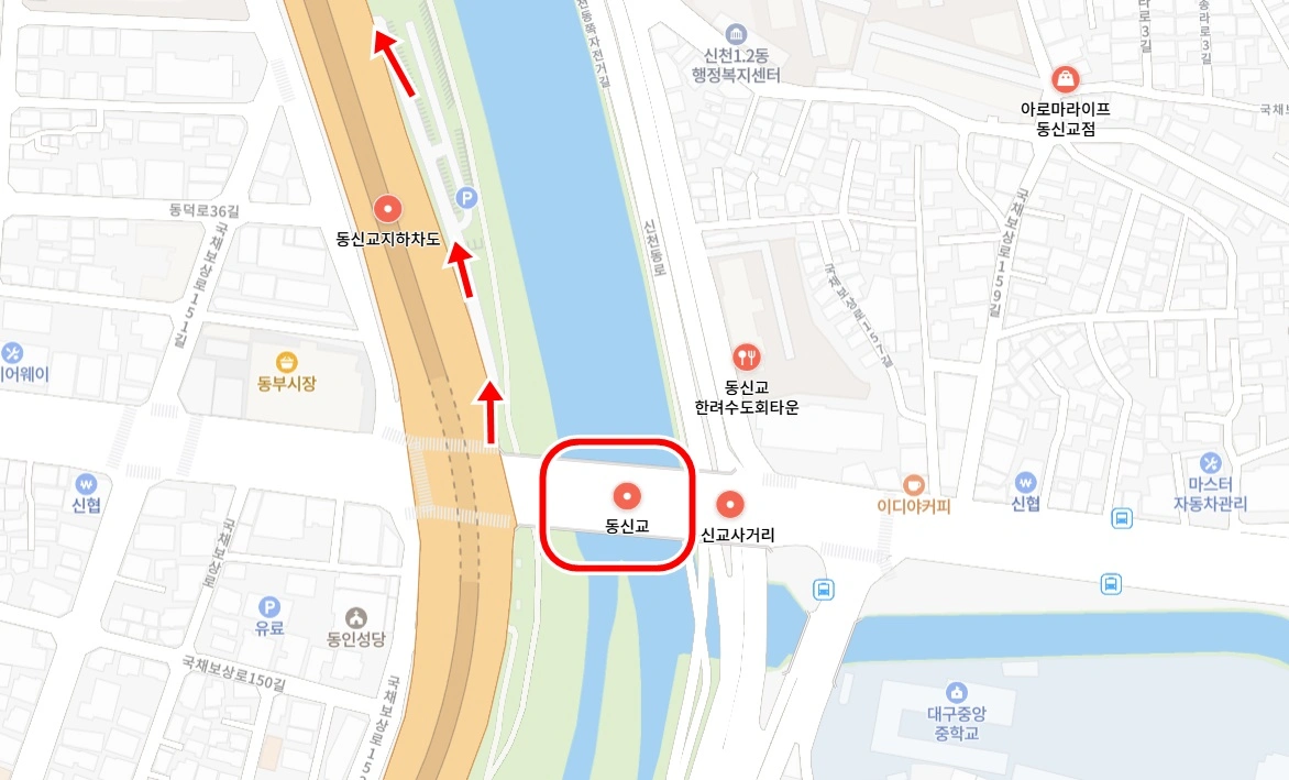 북쪽으로는 대구의 명소 칠성시장이 있어, 상대적으로 혼잡하기 때문입니다.