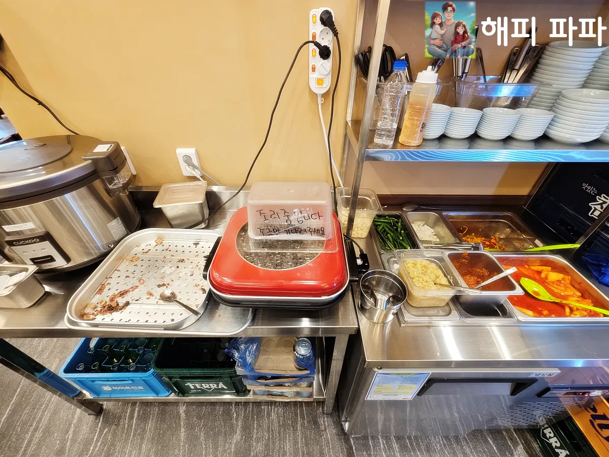 셀프바에서 순대, 내장, 무침회와 공깃밥까지 무한 리필이 되며, 비용은 무료! 산더미 국밥, 스스로 만들 수 있습니다. 순대는 조금 기다리고 마음껏 먹었지만, 무침회는 양배추만 구경했습니다. 아마도 1시 이후, 점심시간 피크타임을 거치며 모두 사라진 듯합니다. 역시 인생은 타이밍입니다. ㅋㅋ
