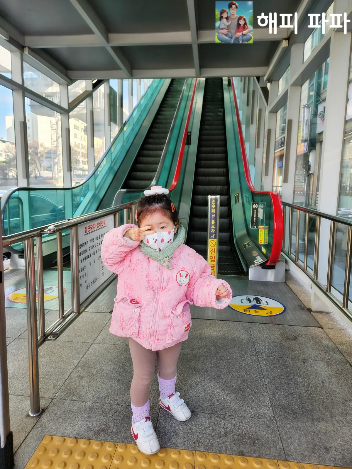 아이와 함께 앉아서 편하게 구경을 하기 위해 종착역인 용지역으로 갔다. 요즘 에스컬레이터를 타는 재미에 빠진 첫째 딸, 엘리베이터 대신 이쪽을 선택했다. 당연히 종착역은 2곳이며 가까운 쪽을 선택하면 된다. 수성구는 용지역, 북구 또는 동구에 산다면, 반대쪽 종착역인 칠곡경대병원역으로 가면 된다.