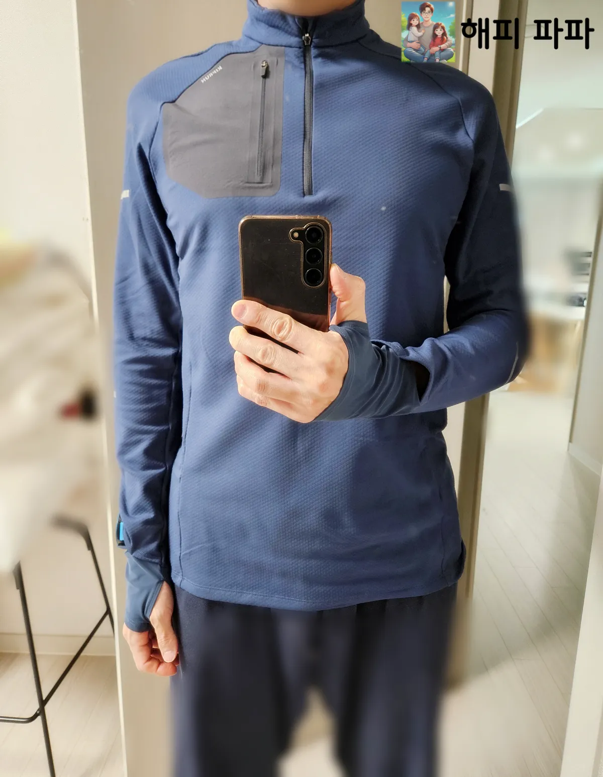 데카트론 반집업 기모 티셔츠는 옷 안에 시계를 착용하고, 엄지 손가락 고리도 있어 취향에 맞게 활용하면 된다.