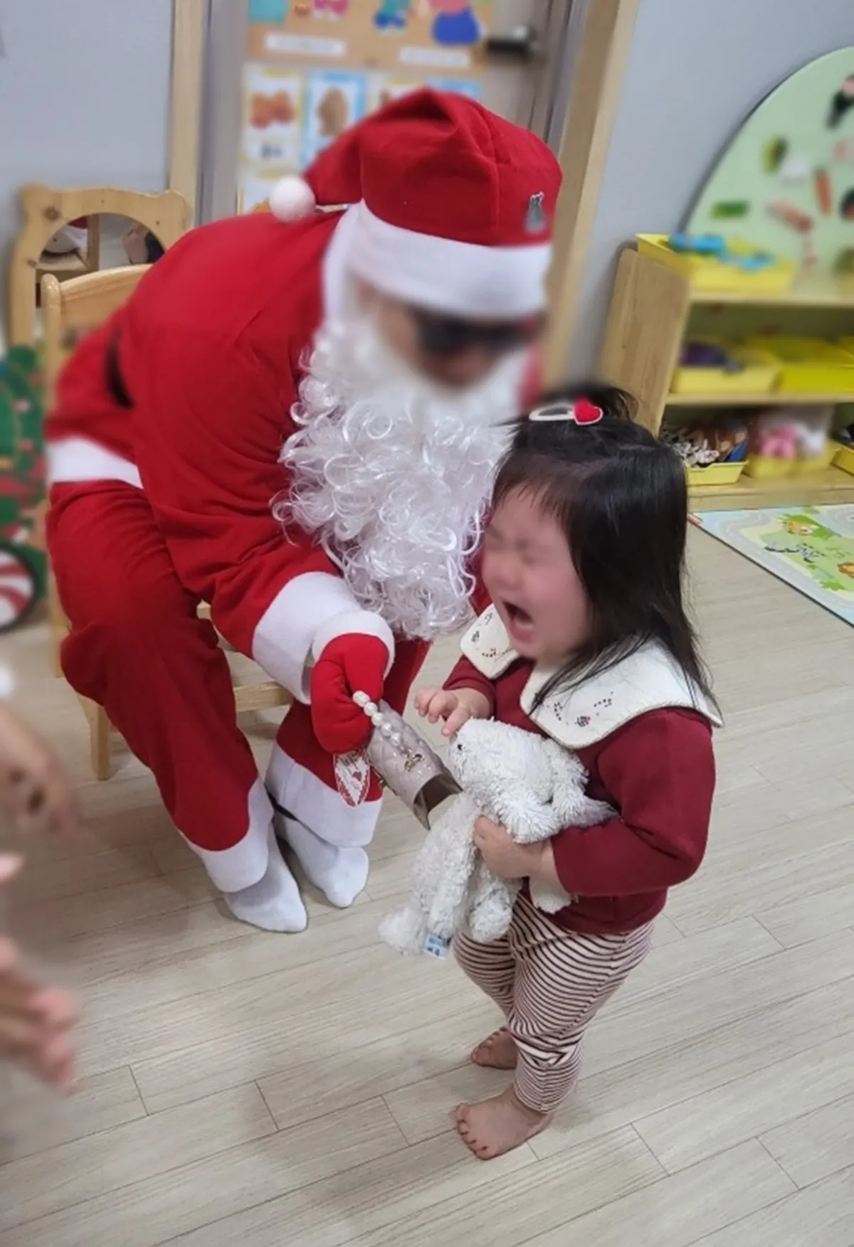 1년 전 첫째 아이의 어린이집 산타 행사 때 모습입니다.ㅋㅋㅋㅋ 선물이고 뭐고, 산타할아버지가 처음이라 너무 무서워서 꺼이꺼이 엄청 울었다고 하더라고요 ㅠㅠ 너무 마음이 아파서 다음번에는 아빠가 할게라는 다짐을 하고 1년을 기다렸네요!!