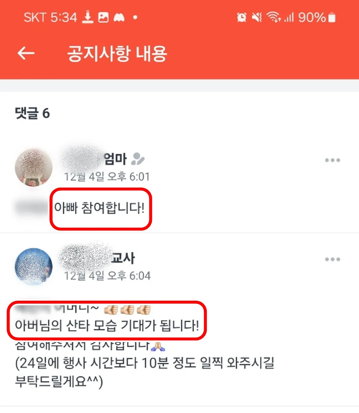 얼마 전 공지사항으로 12월 부모참여활동, 아빠들을 대상으로 크리스마스 산타 모집이 있었습니다.