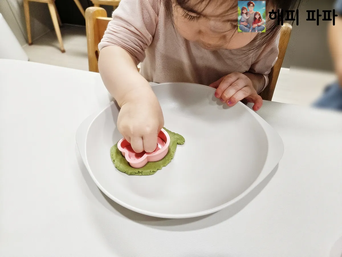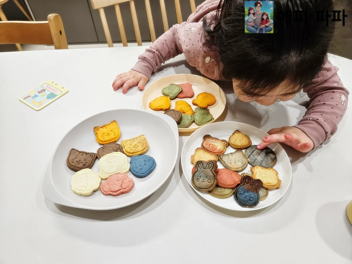 고사리 같은 손으로 동물 얼굴 모양 쿠키커터를 열심히 눌러가며 만들고 있다. 쿠키 반죽을 만져보면 찰흙보다는 말랑하고 클레이보다는 조금 딱딱한 정도이다.