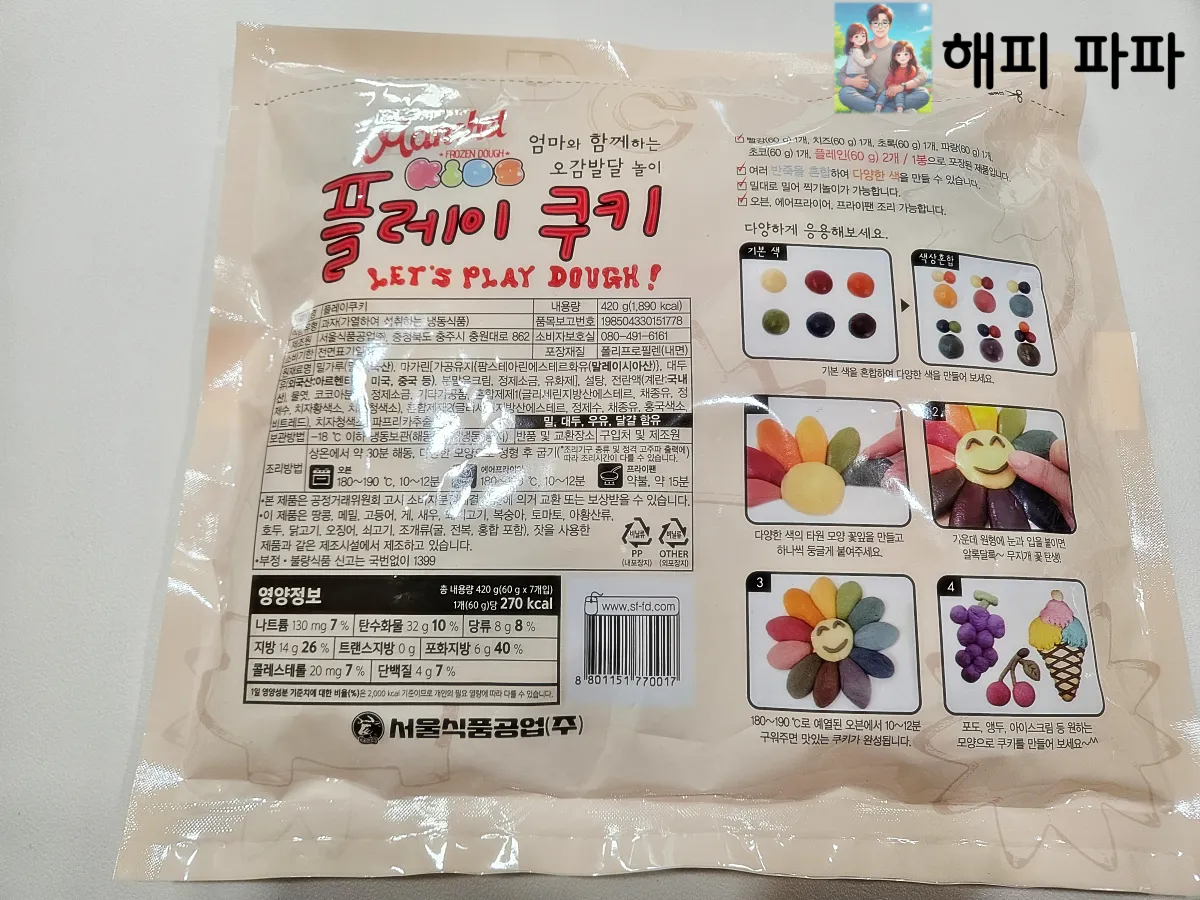 총 3번에 걸쳐서 오븐에 구웠다. 보통 타사의 쿠키 만들기 제품은 300g 정도이지만, 맨치트 플레이쿠키는 420g이다.