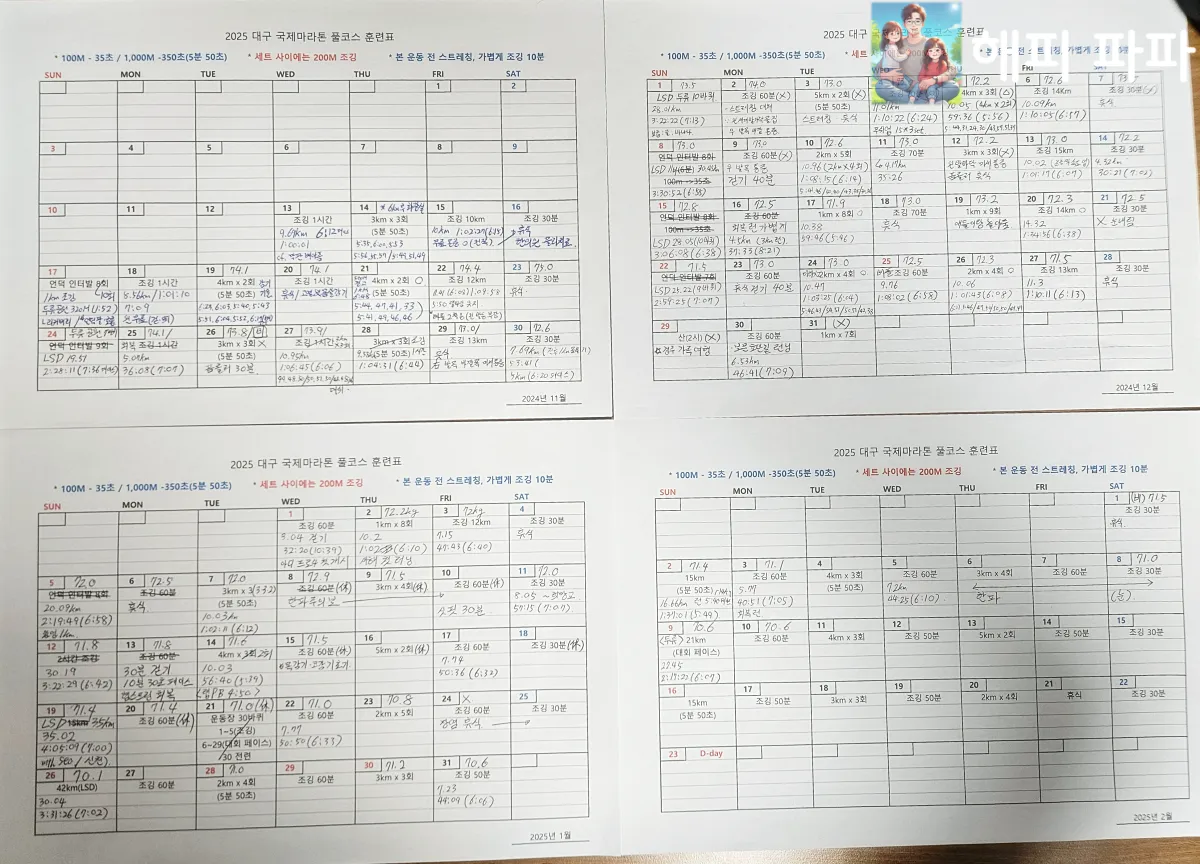 작년 11월 13일부터 시작된 대구마라톤 100일 훈련!