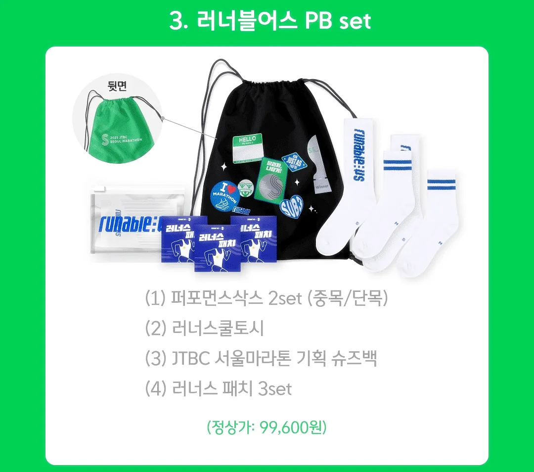 | 구성 | (1) 2025 고양특례시 하프마라톤 HALF (2) 2025 JTBC 서울마라톤 FULL (3) 아미노바이탈 2종 (4) 러너블어스 PB set |